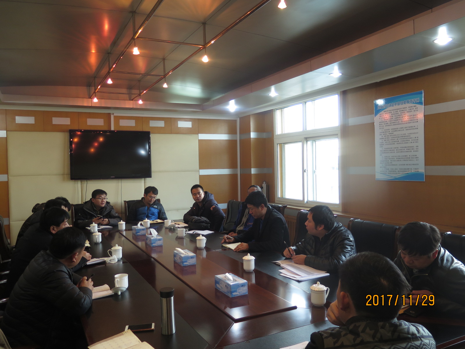 根据《北京市大气污染综合治理领导小组办公室关于重新印发采暖季期间重点项目施工工地清单的通知》(京大气办【2017】81号)内容,区住建委对房山区内“免停”工程进行了认真梳理,并于11月29日下午,组织住建系统上报和监管的2项工程:房山区南水北调巡线路建设工程、涿州-房山供热工程输热主干线项目工程施工现场建设三方管理人员,在房山区住建委召开了针对采暖季期间施工现场安全生产和扬尘治理工作会。会上,区住建委向参会单位传达了《2017-2018年秋冬季建设系统施工现场扬尘治理攻坚行动方案》(京建发【2017】390号)、《建设工程施工现场安全防护、场容卫生及消防保卫标准》、《建设工程施工现场消防安全技术规范》等文件、规范要求,要求各单位要提高认识,落实企业主体责任,根据当前形势,结合自身实际,认真开展施工现场消防保卫、安全生产、食品卫生、扬尘管控等工作,对现场进行全方位的排查检查,做到不留死角、不走过场,不敷衍了事,将各项工作做实,确保工程“不出事、不冒烟、不扬尘”。
